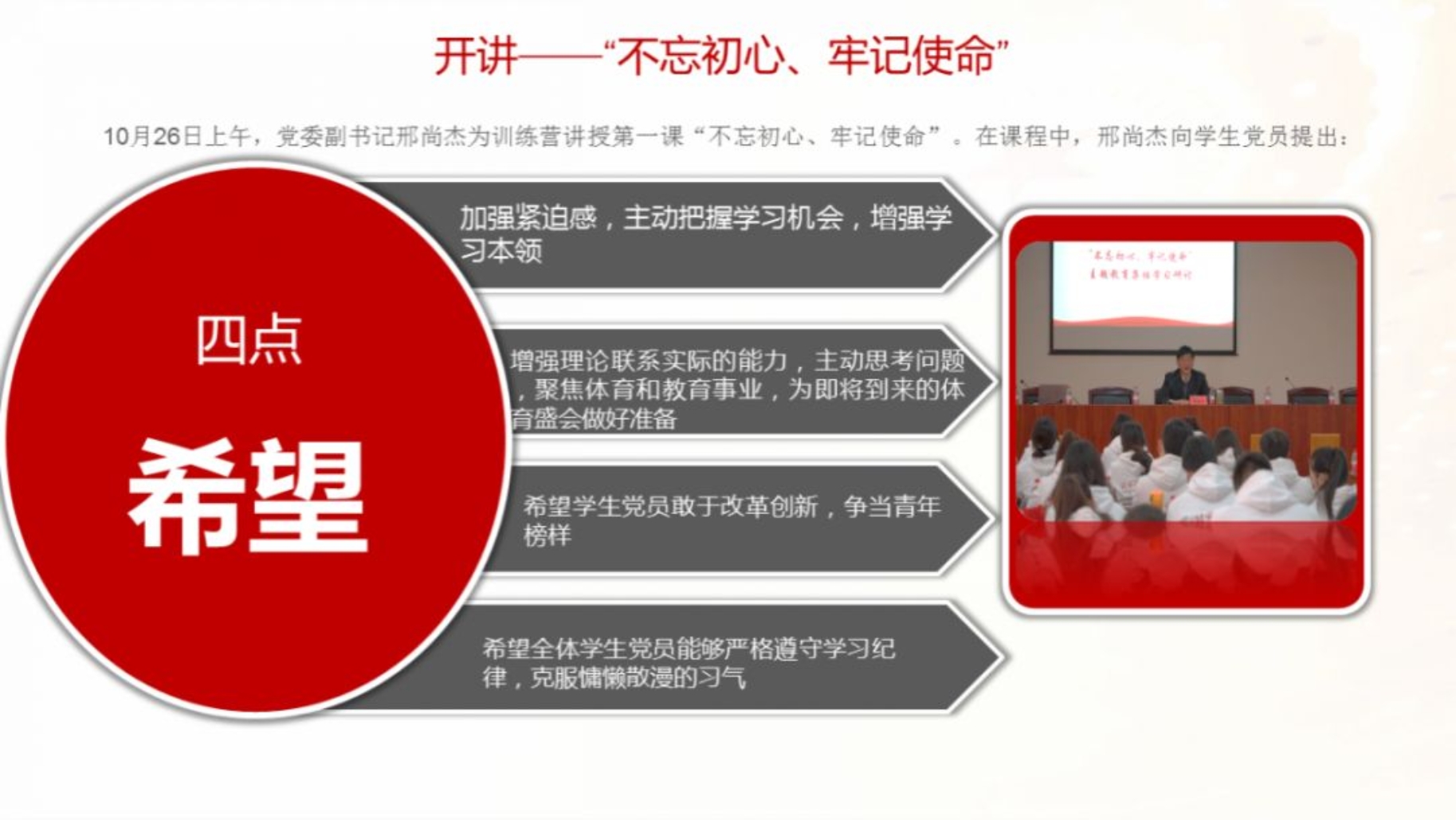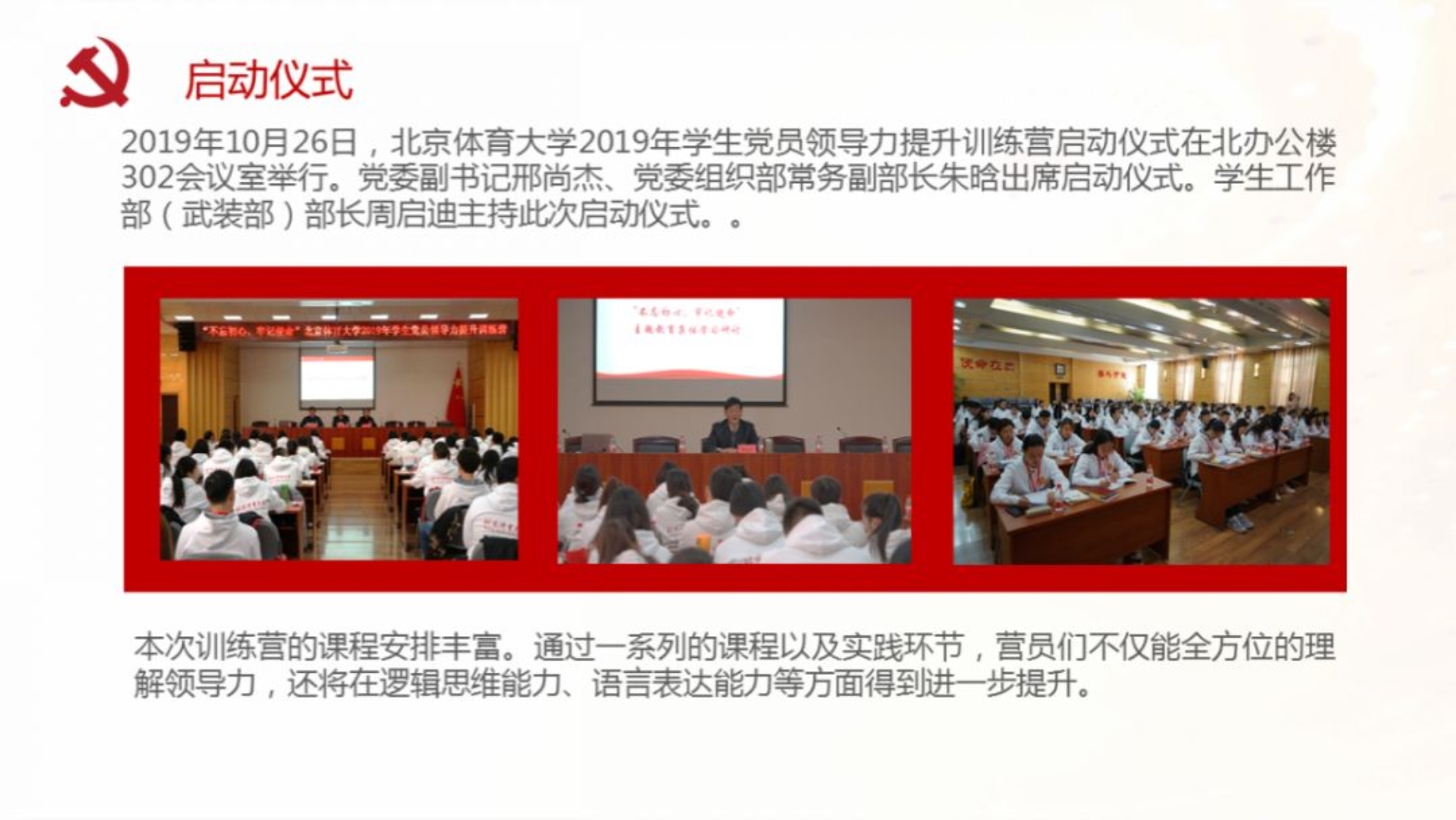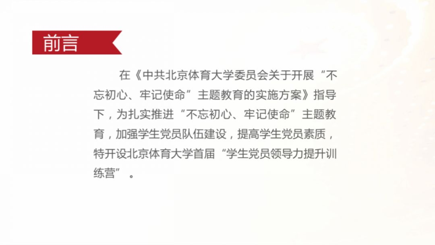 不忘初心,牢记使命。学生党员争当模范,将青春理想熔铸于体育强国事业。william威廉中文官网首届学生党员领导力提升训练营的课程已经暂时告一段落,但在训练营中学习到的知识、建立的友谊将成为成长路上的又一笔财富。